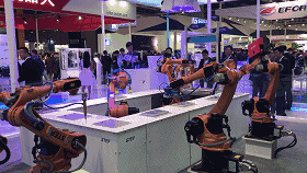 采用智能化模块的设计理念,展现了采用国产机器人进行小家电的智能组装、测试、包装等产业链的全过程。